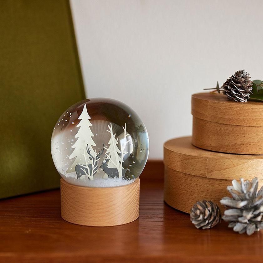 どんなテイストにも馴染むシックなデザインは、クリスマスが終わってもインテリアとして長く楽しめます。リビングや玄関、ベッドサイドなどお気に入りの空間に飾って、モミの木やトナカイに雪がしんしんと降り積もっていく様子をゆったり眺めるだけで贅沢な時間を味わえますよ◎