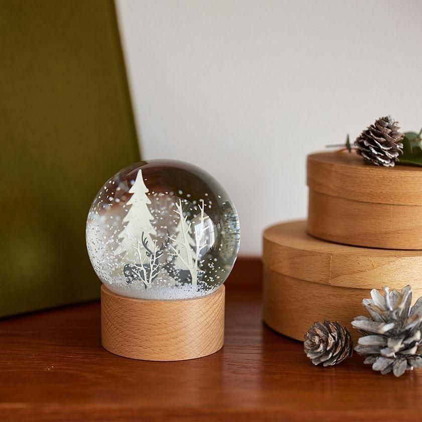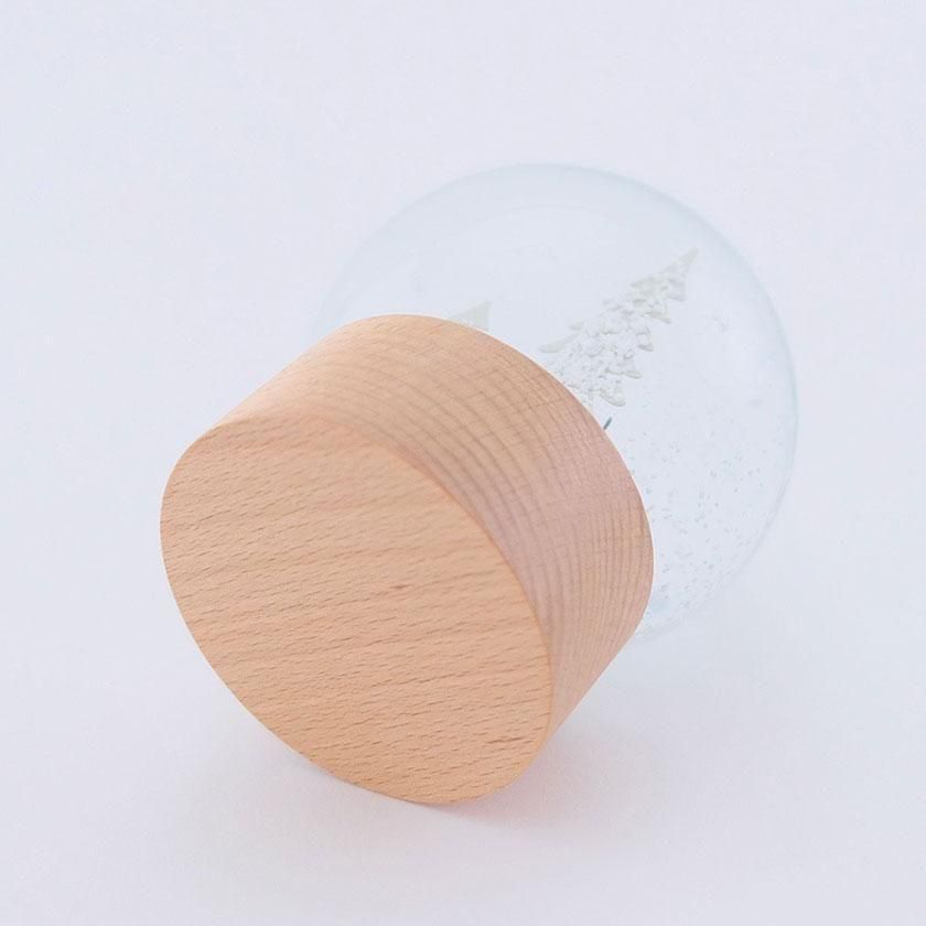雪の中に静かに佇むモミの木と2頭のトナカイを落ち着いた色合いで仕上げたスノードーム。台座にはキメが細かく滑らかな質感が魅力のブナの木を使用することで、あたたかみと高級感を演出しています。ツリーやキャンドルのそばに飾ればクリスマスムードを高めてくれますよ。