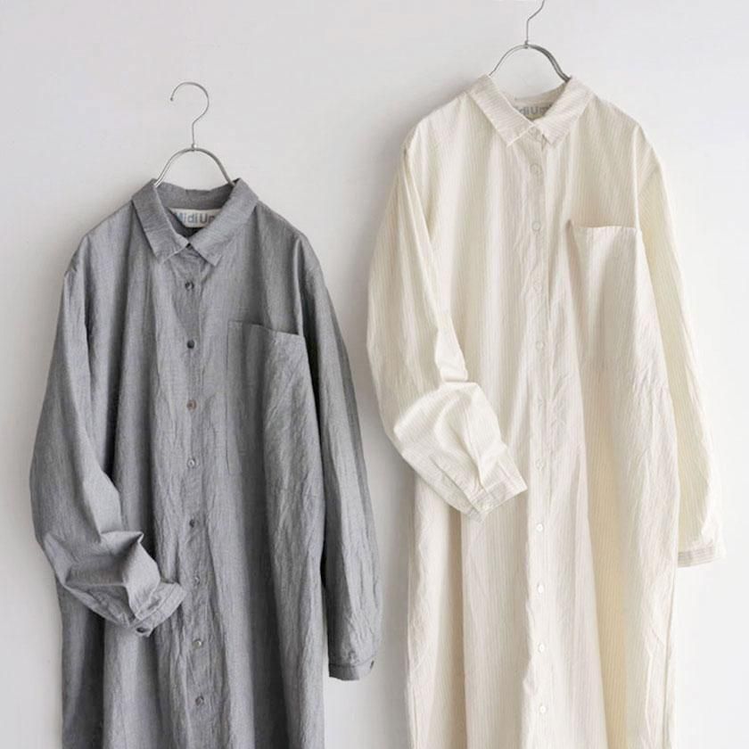 落ち着いた配色ながらも品よく存在感を放つMidiUmi (ミディウミ)のシャツワンピースのご紹介です。