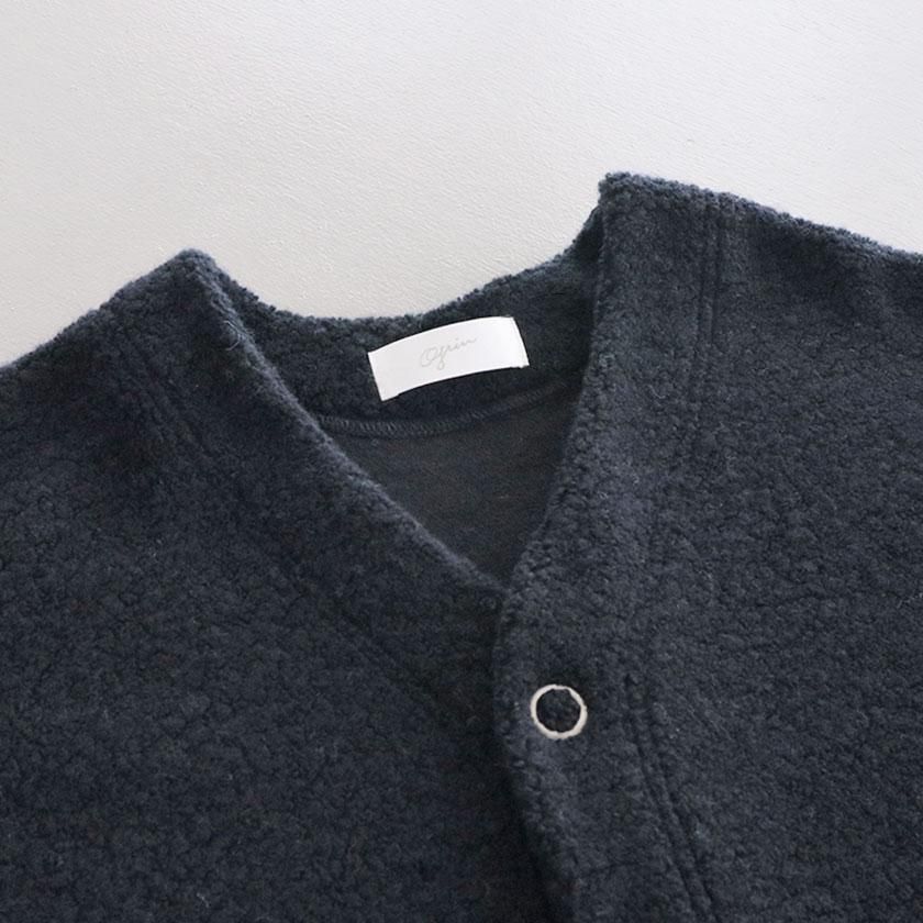 もこもことした風合いが大人可愛い一着。ウールの割合が高く、軽くてあたたかい着心地の良さが魅力です。ほどよく厚みがありながらも軽い仕上がりなので、肩が凝らずに着ていただるのも◎