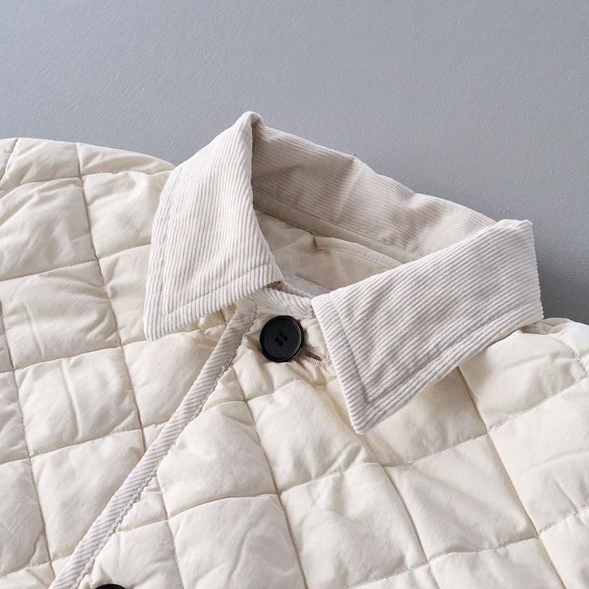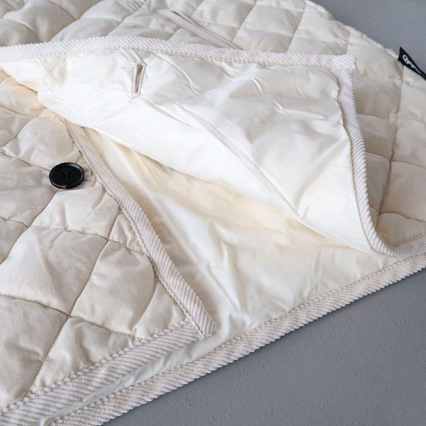 全体的にゆとりを持たせたサイズ感ですが、着丈を腰が隠れるほどの長さにすること野暮ったくならず、すっきりとしたシルエットを実現。コーデュロイ素材の襟とパイピングが全体を引き締めて、どこかクラシカルな印象を与えます。左裾に配されたピスネームがさりげないアクセントに。両サイドのジップポケットの内側は手を入れた時に冷たく感じないよう起毛素材を使用しており、細かなところまでこだわりが感じられます。