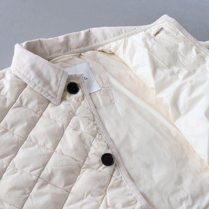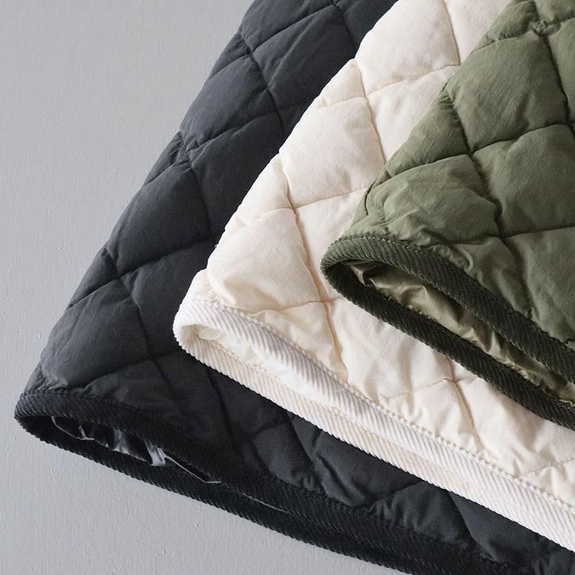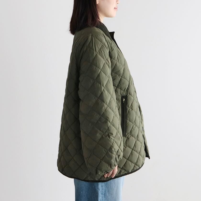 生地にはドライタッチでほどよくハリのある高密度のナイロンタフタを使用。マットな表面感が特徴で、ミリタリー感を抑えたタウンユースにも馴染むきれいめな仕上がりになっています。ダウンのボリューム感が控えめなので着膨れしにくいのも嬉しいポイント。保温性が高く、肩の凝らない軽い着心地が魅力で、重ね着が増える寒い時期もストレスフリーにご着用いただけますよ。