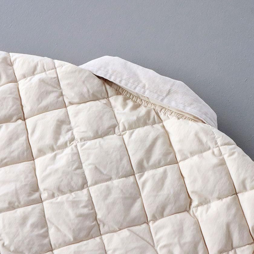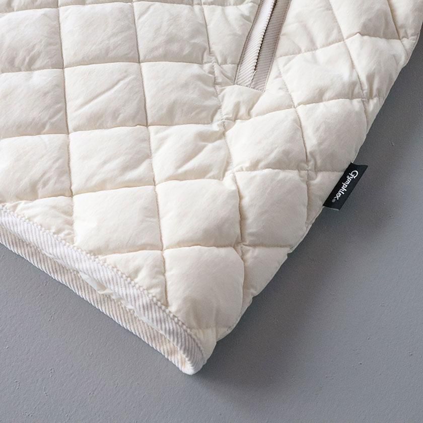 ※乾燥させる際には軽くたたいて羽毛の片寄りを均一にし、吊るさずに平らに置いて干してください。