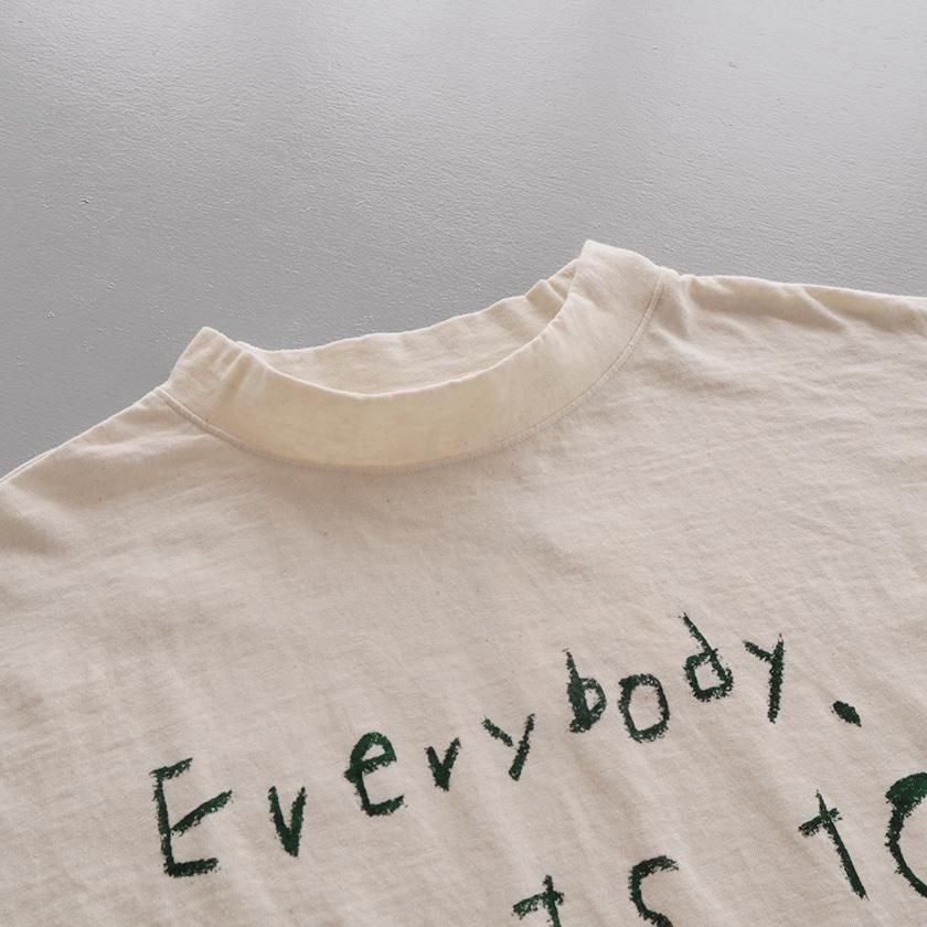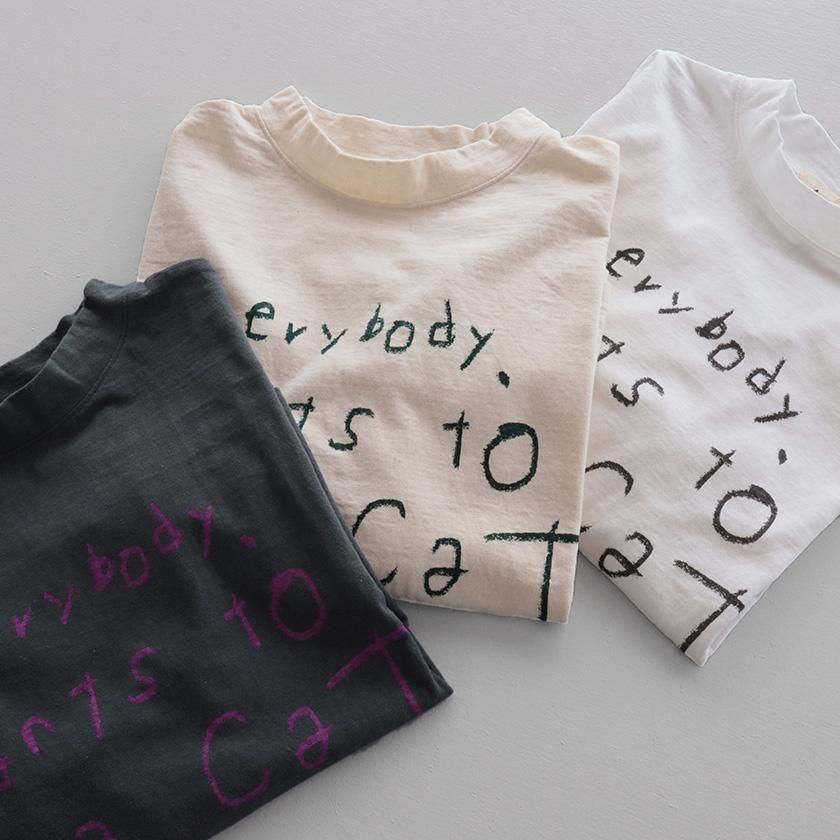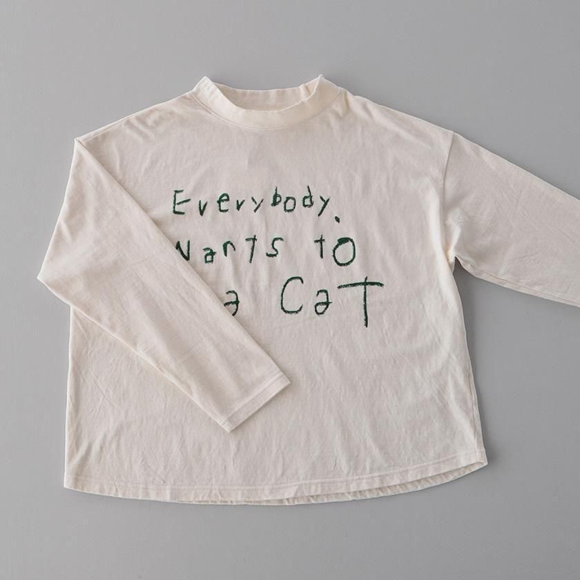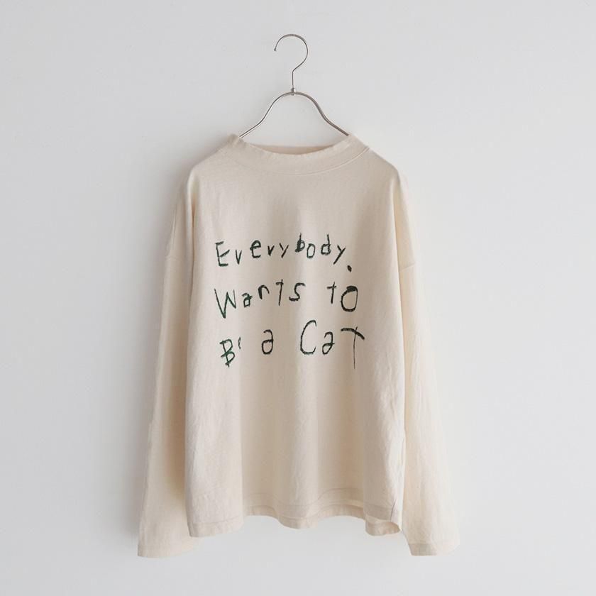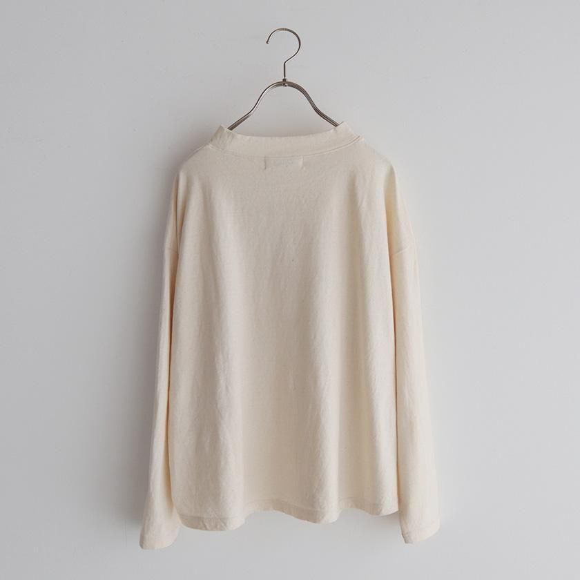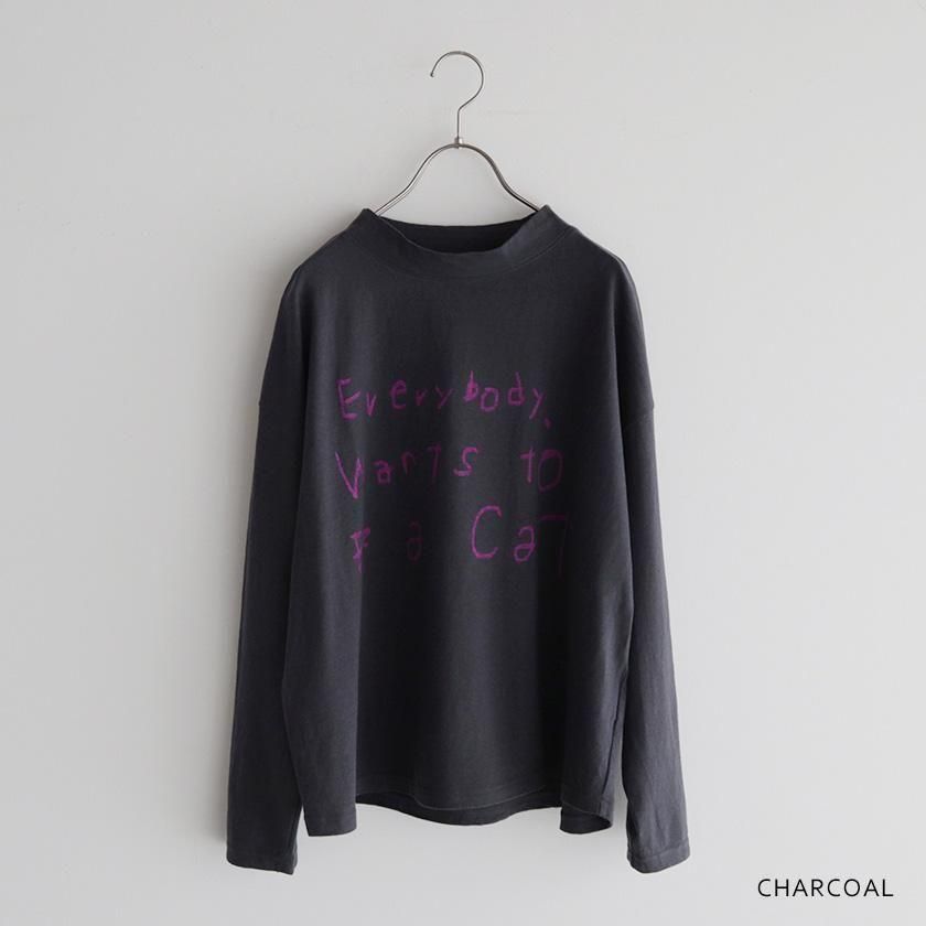 ほどよくゆとりを持たせたリラックス感のあるシルエット。長すぎず短すぎずの着丈でどんなボトムスともバランスよく決まります。首元はほんのり立ち上がったハイネックデザイン。フロントに施した遊び心のあるプリントがアクセントになっています。