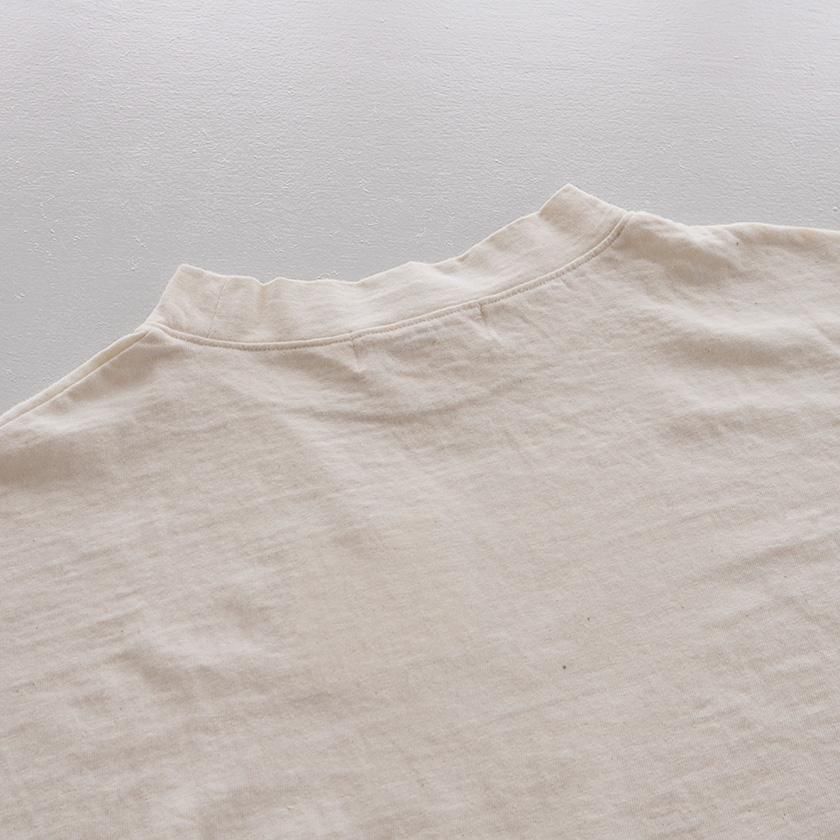 生地にはブランド定番素材のラフィ天竺を使用。ふんわりとしたナチュラルな風合いが魅力です。従来よりもやや肉厚にすることで一枚でも透けにくく、安心して着用いただけますよ。