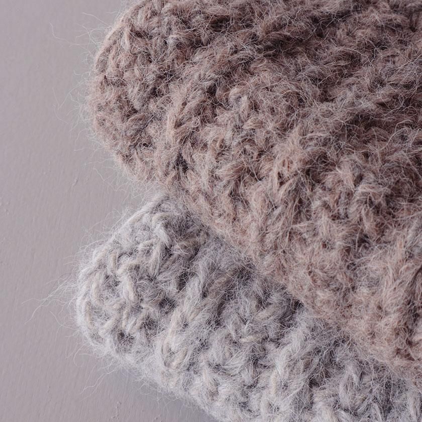 ペルーの熟練の編み子さんによって手編みで丁寧に編み上げられた特別な一着。原料には保温力に優れたハイランドウールと、アルパカ全体のわずか約10%しか採れない希少なスーリアルパカの糸を使用しています。スーリアルパカの毛は非常に細く、しなやかでありながら驚くほど丈夫で保温性にも優れているのが特徴。ウールと引き揃えて編むことで、より軽さと着心地の良さがプラスされ、スーリアルパカならではの上品な艶と柔らかな風合いを堪能できる仕上がりになっています。