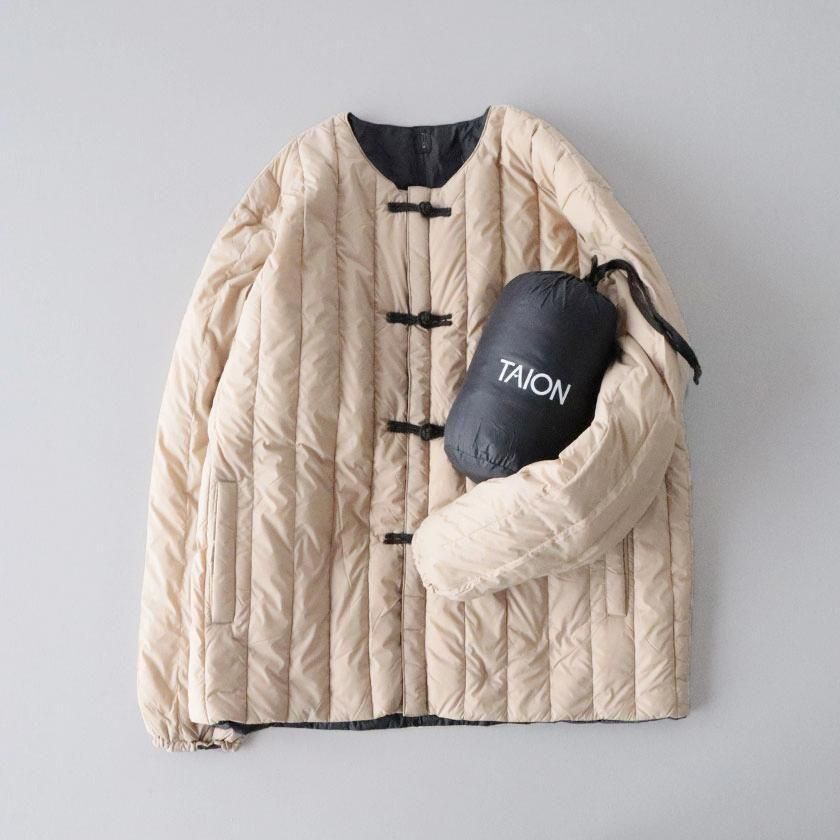 チャイナボタンが着こなしに映えるTAION (タイオン)のリバーシブルダウンジャケットのご紹介です。