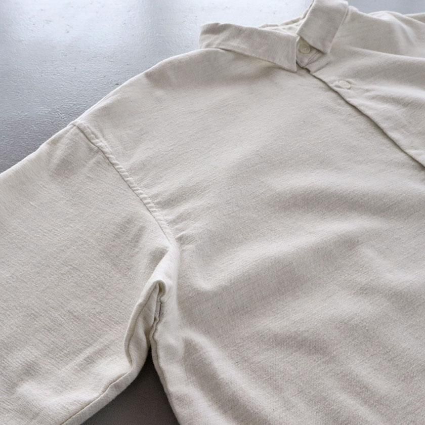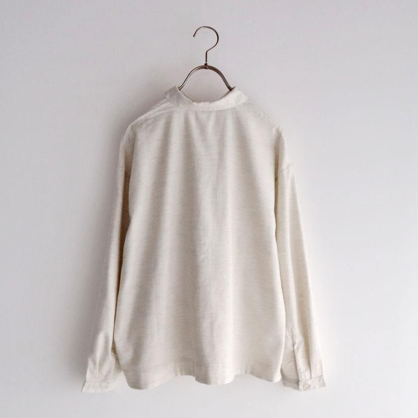 生地には表面を起毛させた暖かみのあるコットンネルを使用。タテ糸とヨコ糸で異なる色を使用することで、深みのある色合いを表現しています。優しい風合いに加え、しっかりと暖かい着心地で秋冬のデイリーウェアにぴったりなアイテム。綿100%素材なので静電気の起きやすいこれからの時期に大活躍します。
