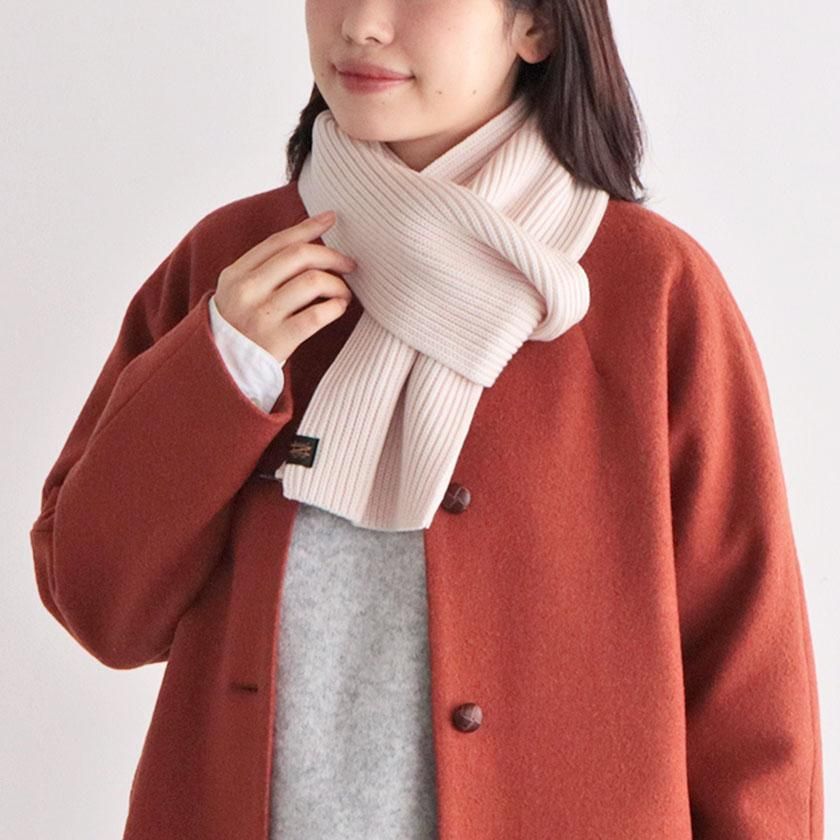 美しい立体的な編み目が映えるシンプルなデザイン。ほどよいボリューム感で一周巻きやワンループ巻きにしても、もたつかずスッキリと着用していただけますよ。