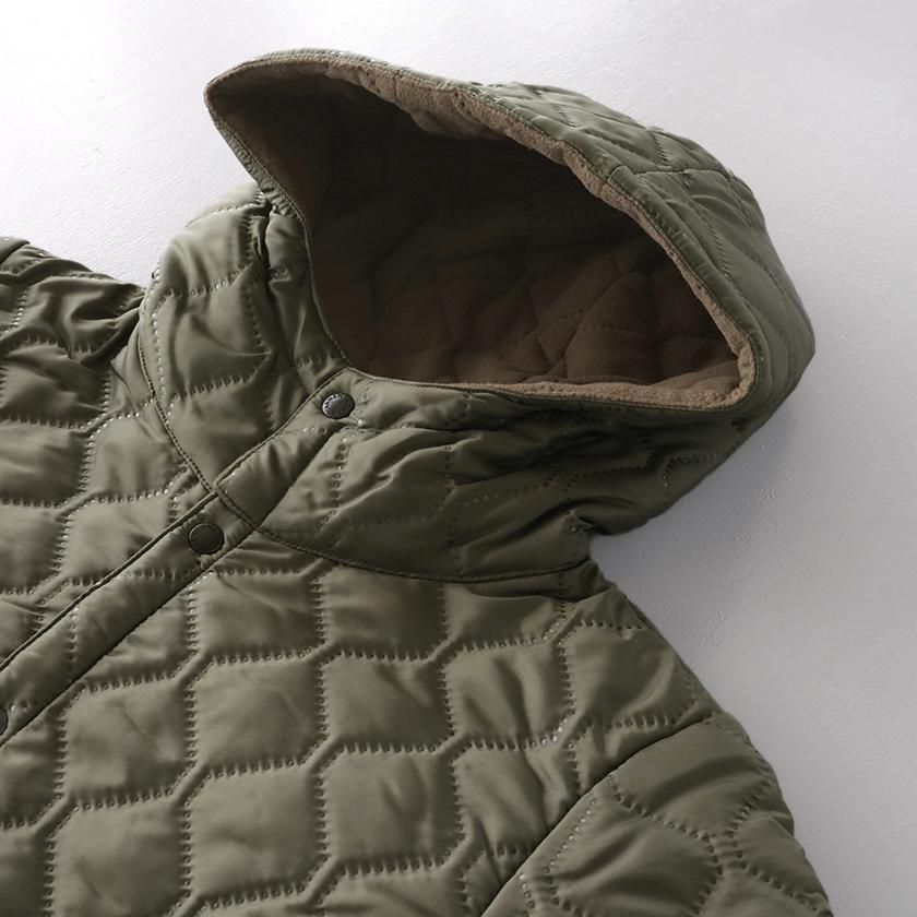 ほどよくゆとりを持たせつつ、ワイドになりすぎないよう仕上げたシルエットがスマートな印象。立体的なフードもポイントの一つで、フロントのスナップボタンを上まで留めれば冷たい風から首元を守ってくれますよ。着丈は膝が見え隠れするミドル丈。どんなボトムスともバランスがとりやすく、さっと羽織るだけでこなれた雰囲気が漂います。表と裏、両面のフロントに配されたパッチポケットの内側は、手を入れた時に冷たく感じないようフリース素材を採用。コーデュロイのパイピングが全体を引き締めてデザインのアクセントになっています。