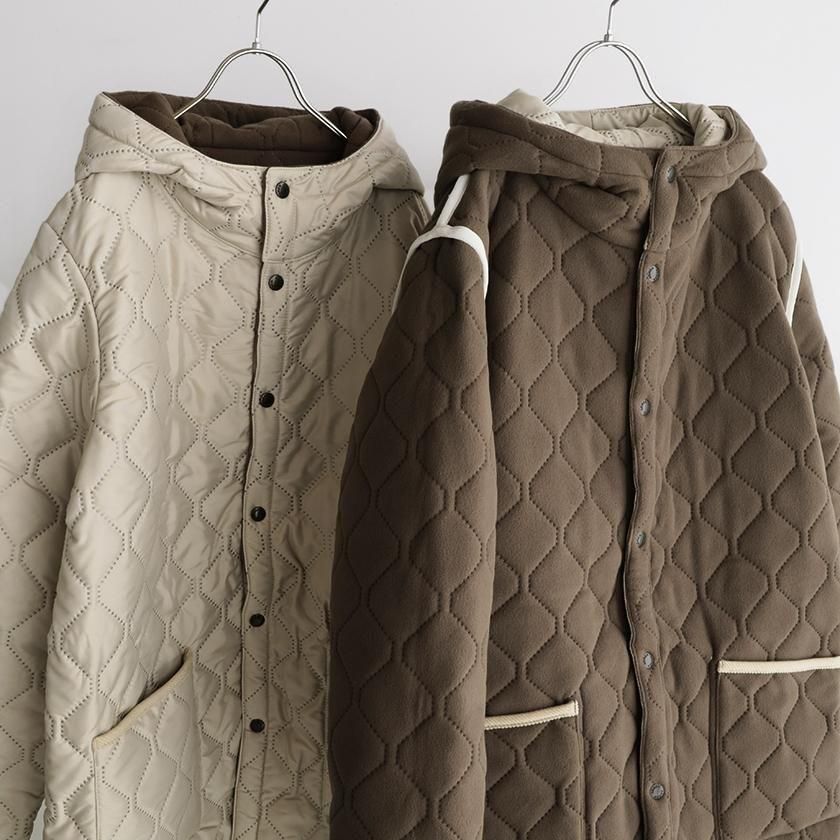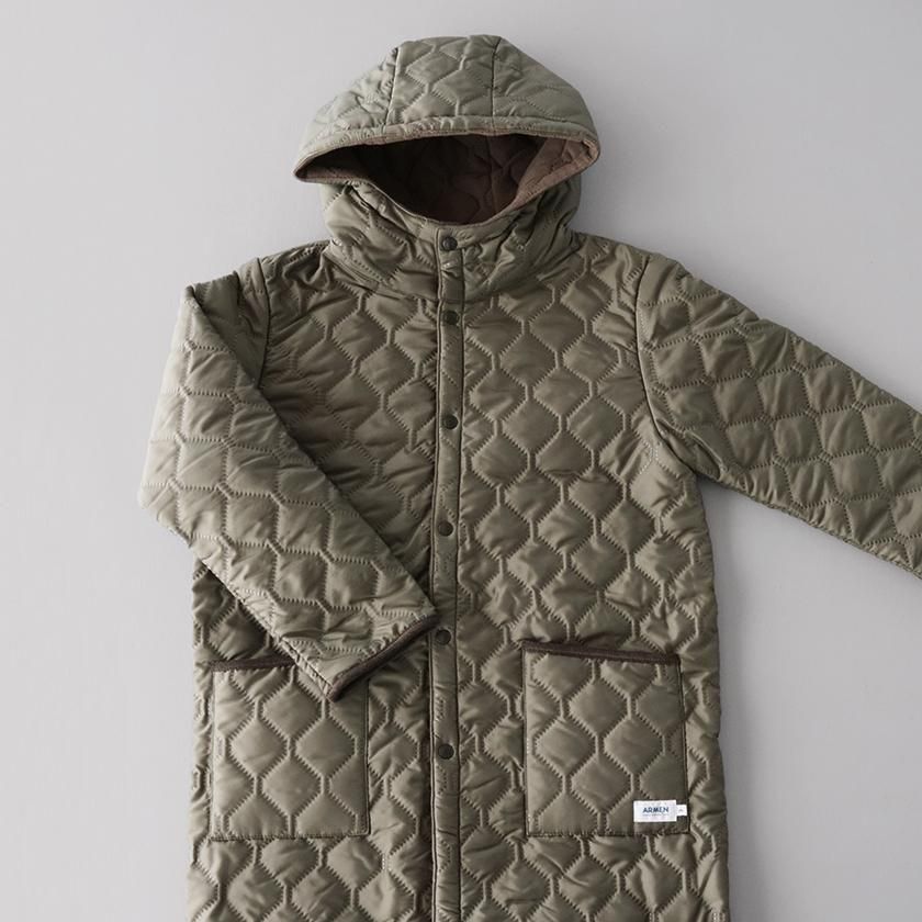 ARMEN(アーメン)を象徴するヒートキルトシリーズより、着こなしの幅が広がるリバーシブル仕様のフード付きコートのご紹介です。