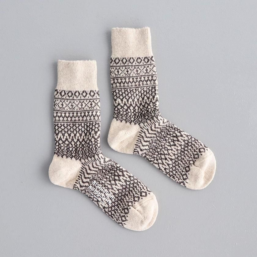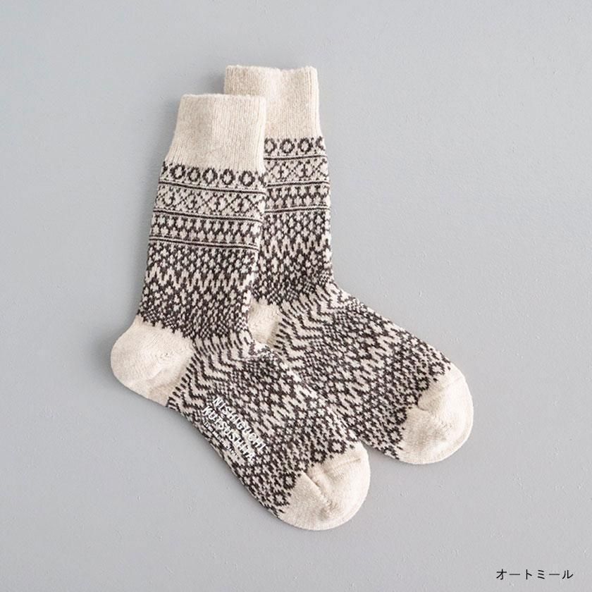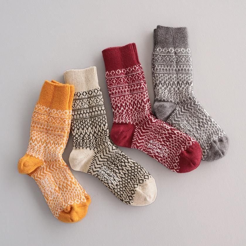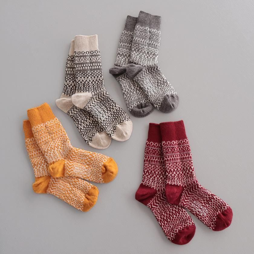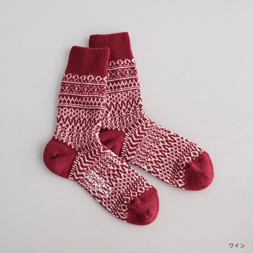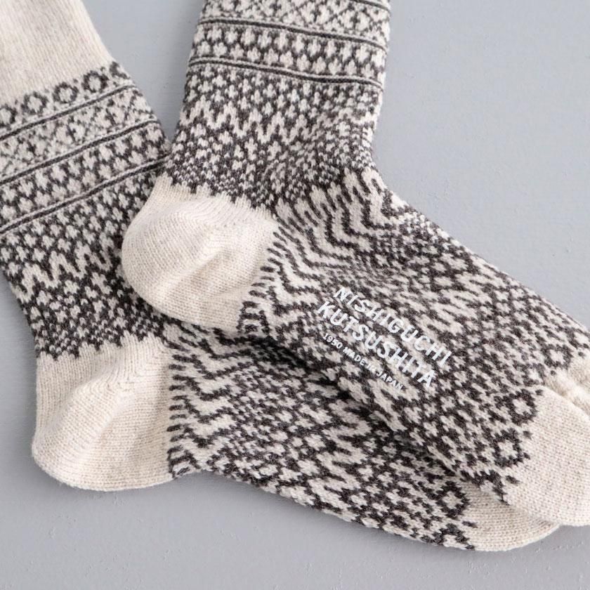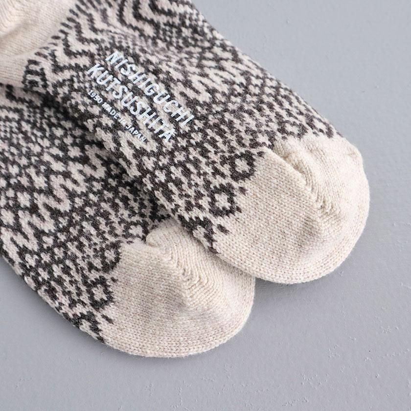 靴下処でもある奈良県発のファクトリーブランドNISHIGUCHI KUTSUSHITA (ニシグチクツシタ)より、ほっこりと可愛いジャガード柄ウールソックスのご紹介です。