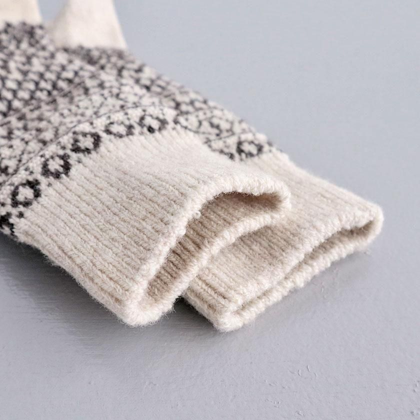 細かなジャガード編みの模様は北欧の芸術の都・オスロをイメージしてデザインされたもの。スニーカーやレザーシューズとの相性も良く、ボトムスの裾からのぞかせてアクセントにしても素敵ですよ◎