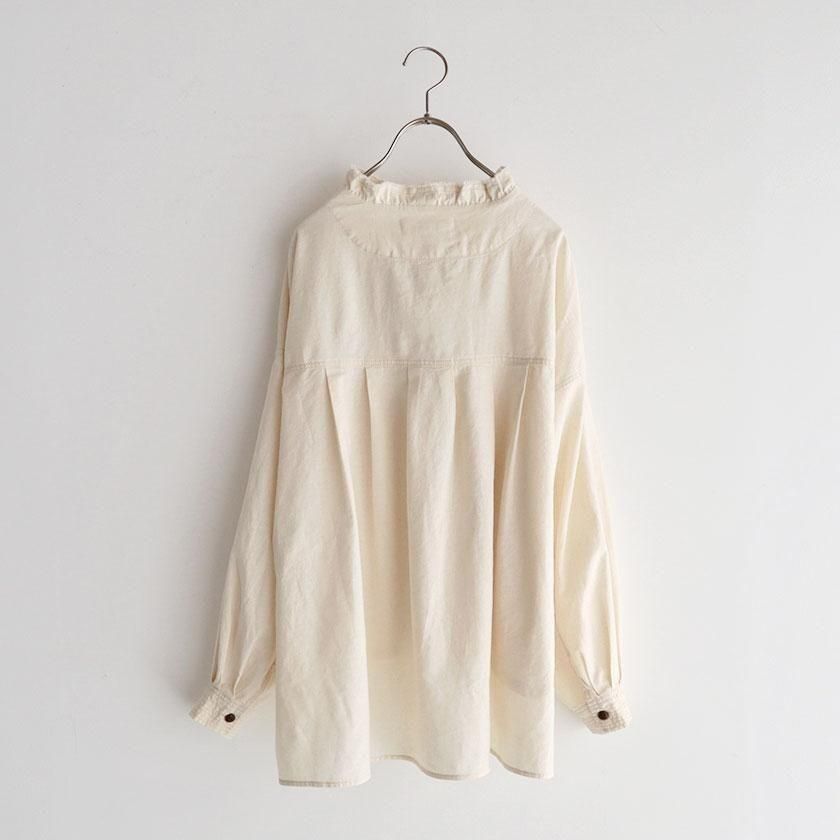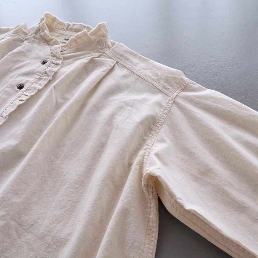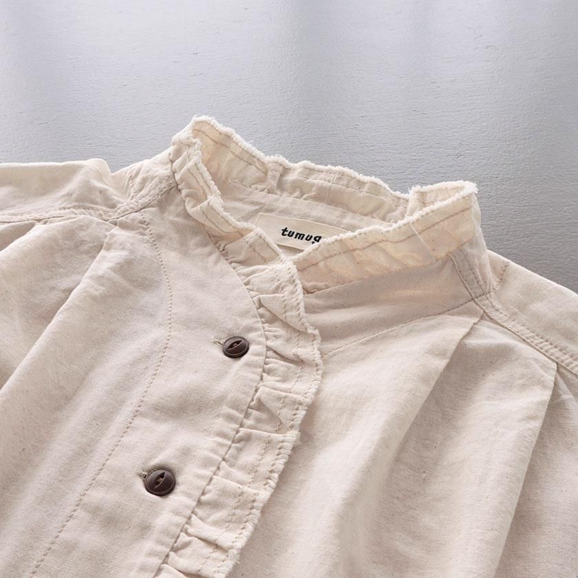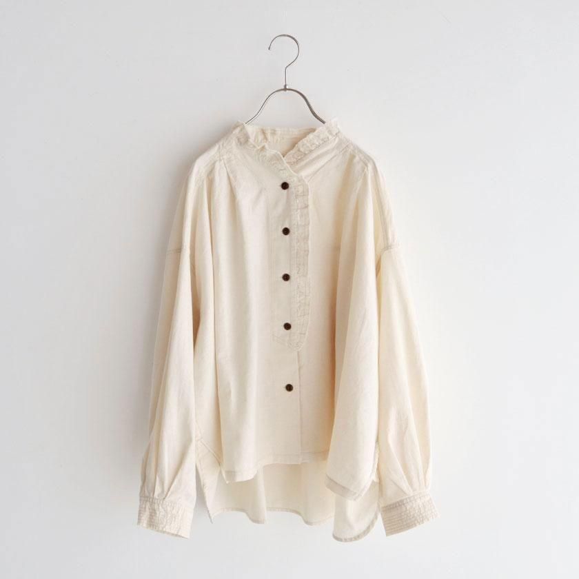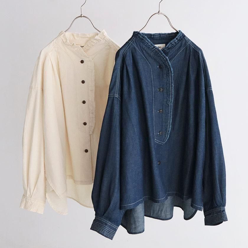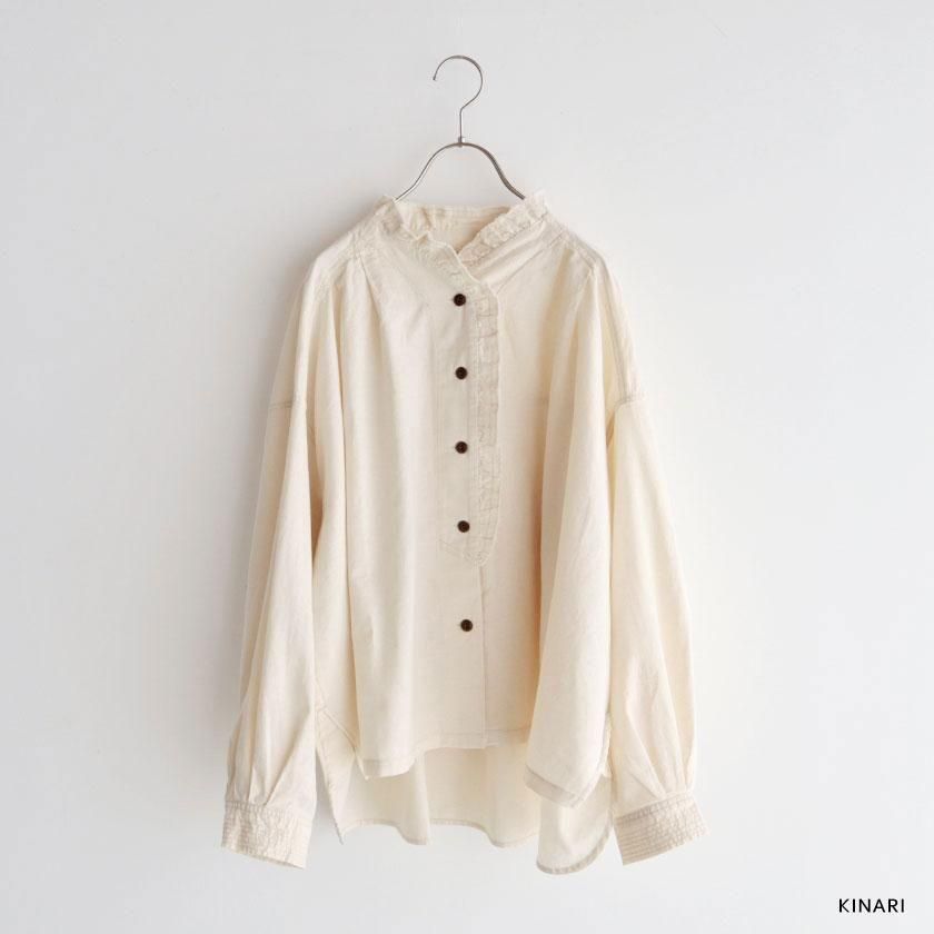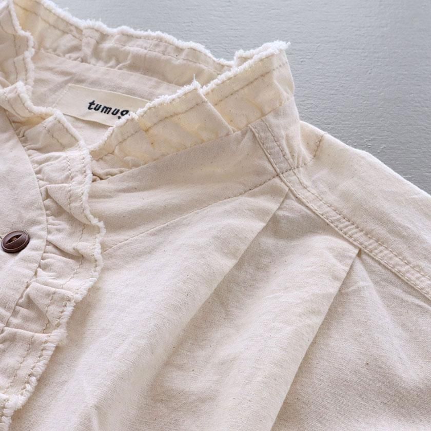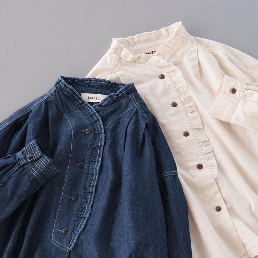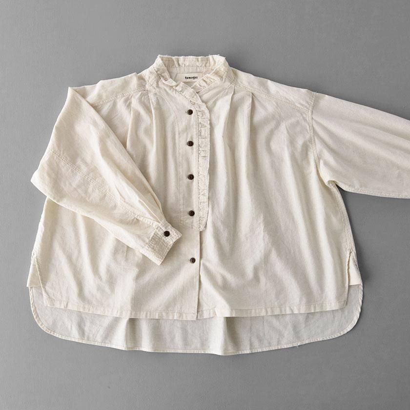 カジュアルさと甘さが絶妙なバランスで調和したtumugu: (ツムグ)のフリルシャツのご紹介です。