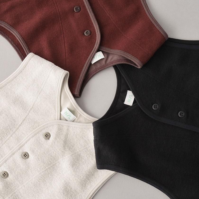 NATURAL LAUNDRY (ナチュラルランドリー)の秋冬の定番、ウールリングシリーズからパイピングベストが登場!ウール混紡素材で軽さと暖かさを兼ね備えたベストのご紹介です。