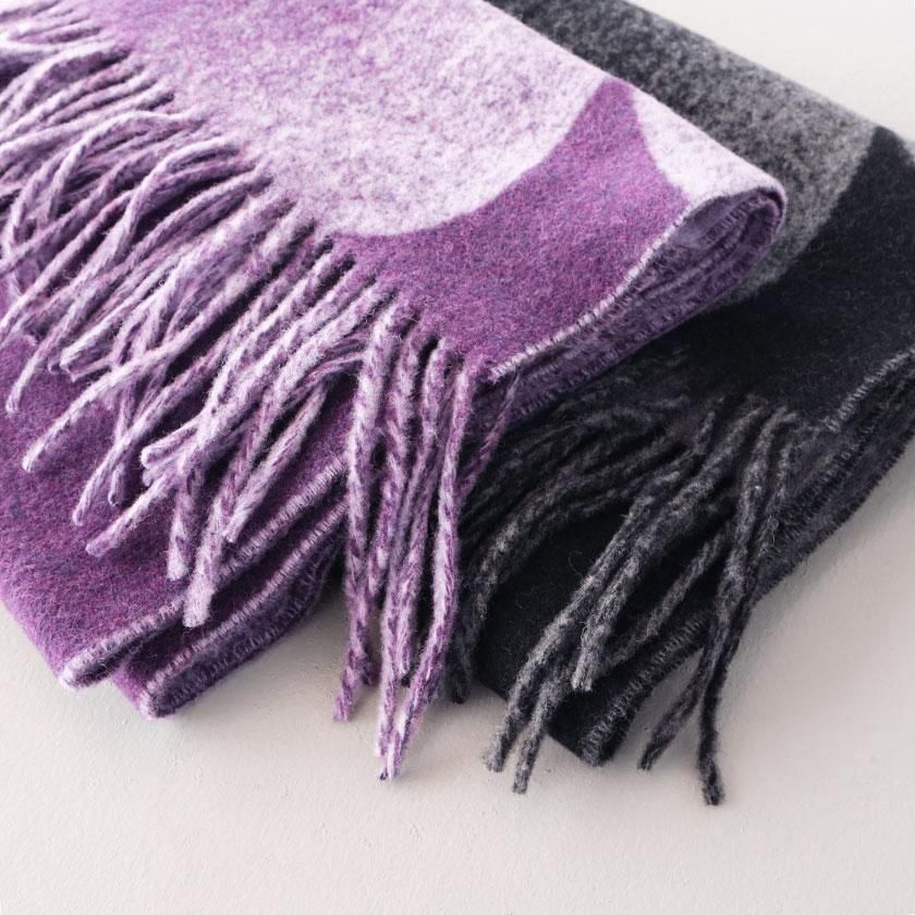 カラーはパープルとブラックの2色。ネイビーやブラックなど暗めのアウターとも好相性です◎