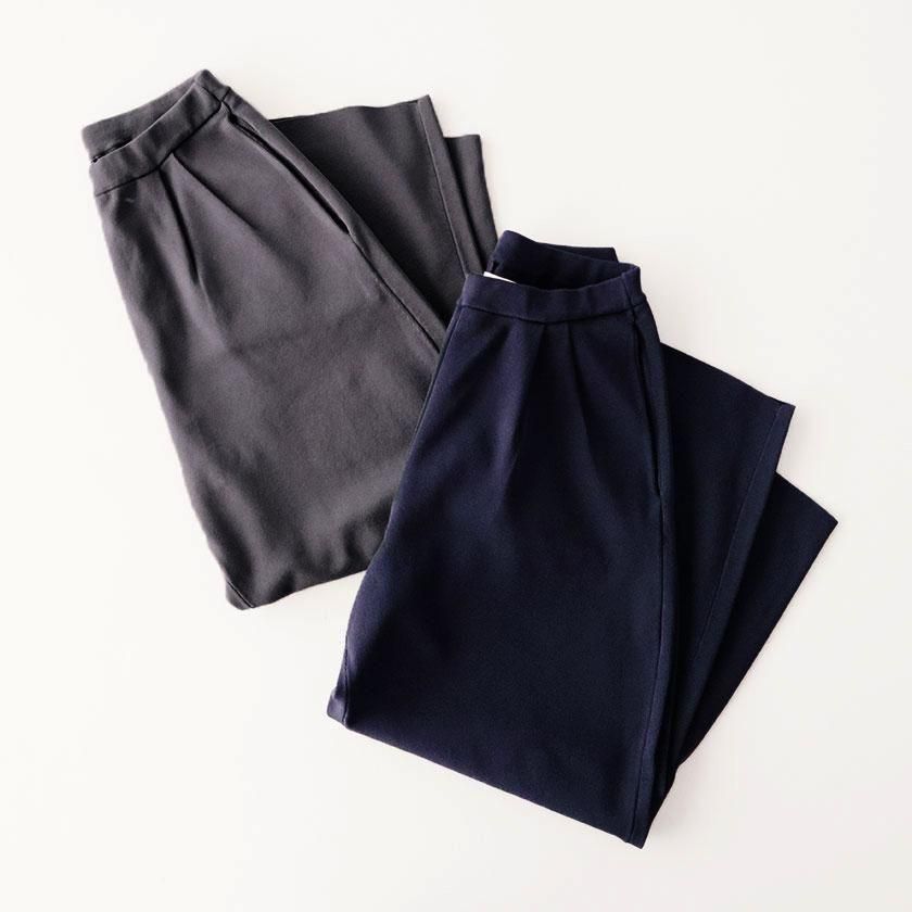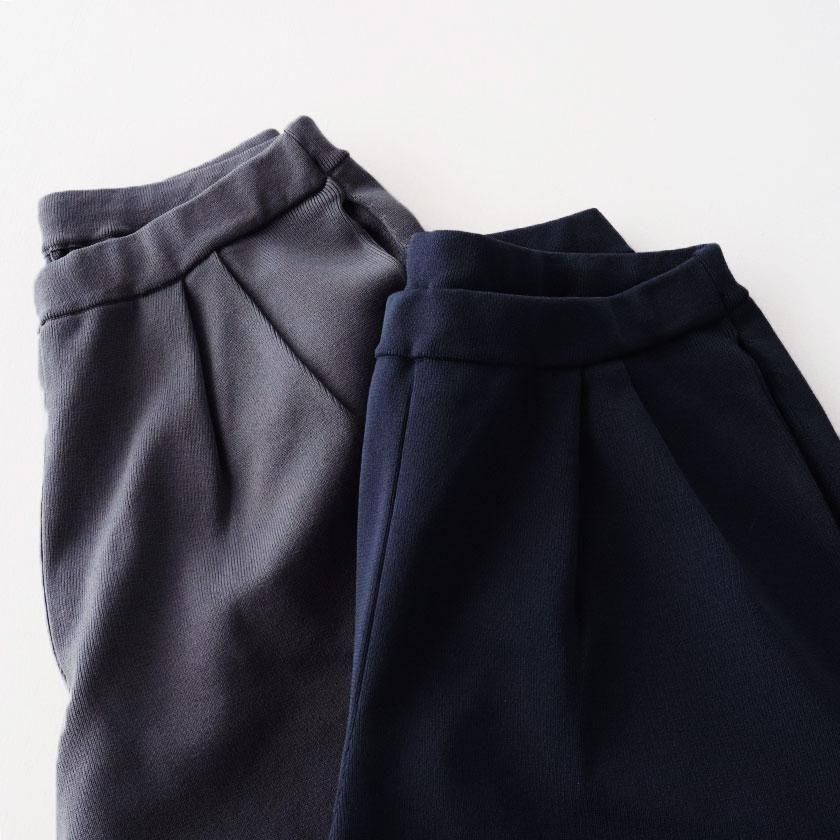 STAMP AND DIARY (スタンプアンドダイアリー)より、ミラノリブで編み立てた上品な佇まいのタックパンツのご紹介です。