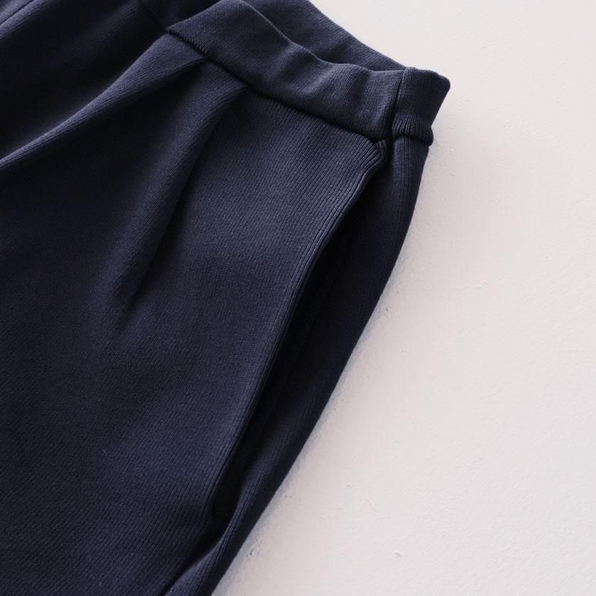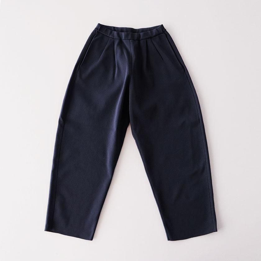 ほどよくゆとりを持たせたテーパードシルエット。ウエストに入れたタックが立体感を生み、裾に向かってゆるやかに細くすることですっきりとしたラインを作り出しています。ウエストは総ゴム仕様でサイズ調節ができるドローコード付き。リラックス感ときちんと感を両立させた仕上がりが魅力です。