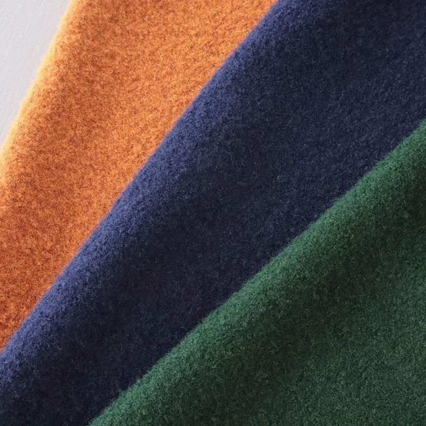 生地に使用しているのはふっくらとしたフェルトのような質感のウールリング。密に編まれたパイル編みが空気をたくさん含むため、保温性に優れているのが特徴です。ウール特有のチクチクとした肌触りも気になりにくく、軽さと伸縮性も兼ね備えているのも嬉しいですね。