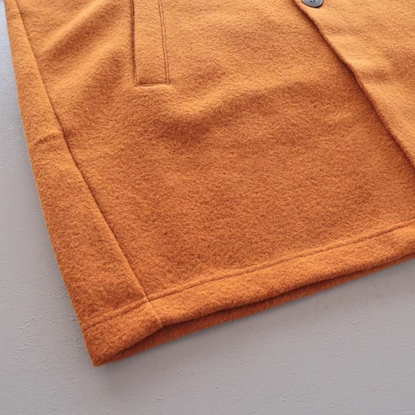 ほんのりと丸み帯びたコクーンシルエット。身幅や腕周りにゆとりを持たせているのでインナーを着こみやすく、幅広いアイテムに気兼ねなく合わせていただけます。着丈はヒップをすっぽりと覆う安心感がありながら、バランスよく決まる長すぎず短すぎずの絶妙な長さに。