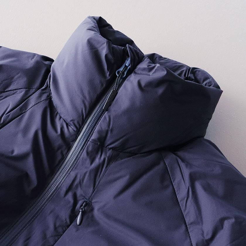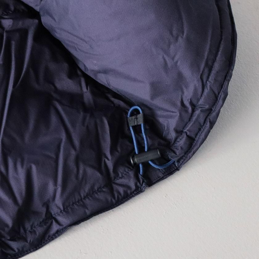 生地には極薄の糸を高密度に織りあげた15デニールナイロンを使用。引き裂きを防ぐリップストップを入れることで、薄手ながらも高い耐久性を実現しています。水をはじき、染み込みを防ぐ耐久撥水加工を施しているので、ダウンの水濡れを防いでいつでも暖かな着心地に。中綿は高い保温性を発揮する750フィルパワーのダウンを採用。デイリーシーンから本格的なアウトドアまで様々なシーンで活躍してくれる一着です。