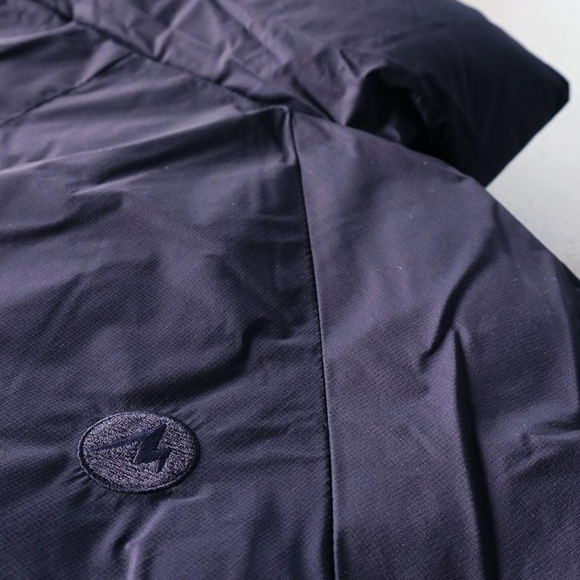 ほどよくゆとりを持たせたAラインシルエット。ロフト感を活かしたデザインが魅力で見た目にもあたたかな印象を与えます。着丈は膝が見え隠れする長さ。裾の両端にはドローコードが付ており、絞ってシルエットの変化を楽しめます。ポケットは両サイドと左胸にジップポケットを配置。ポケットの内側は手を入れた時に冷たく感じないよう肌当たりの良い起毛素材を使用しています。