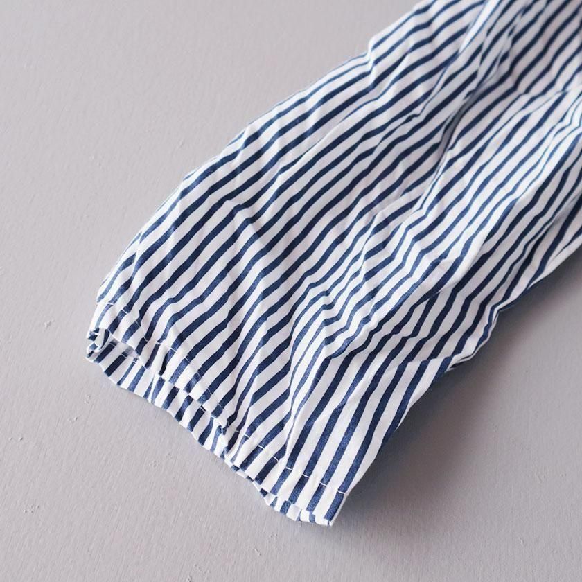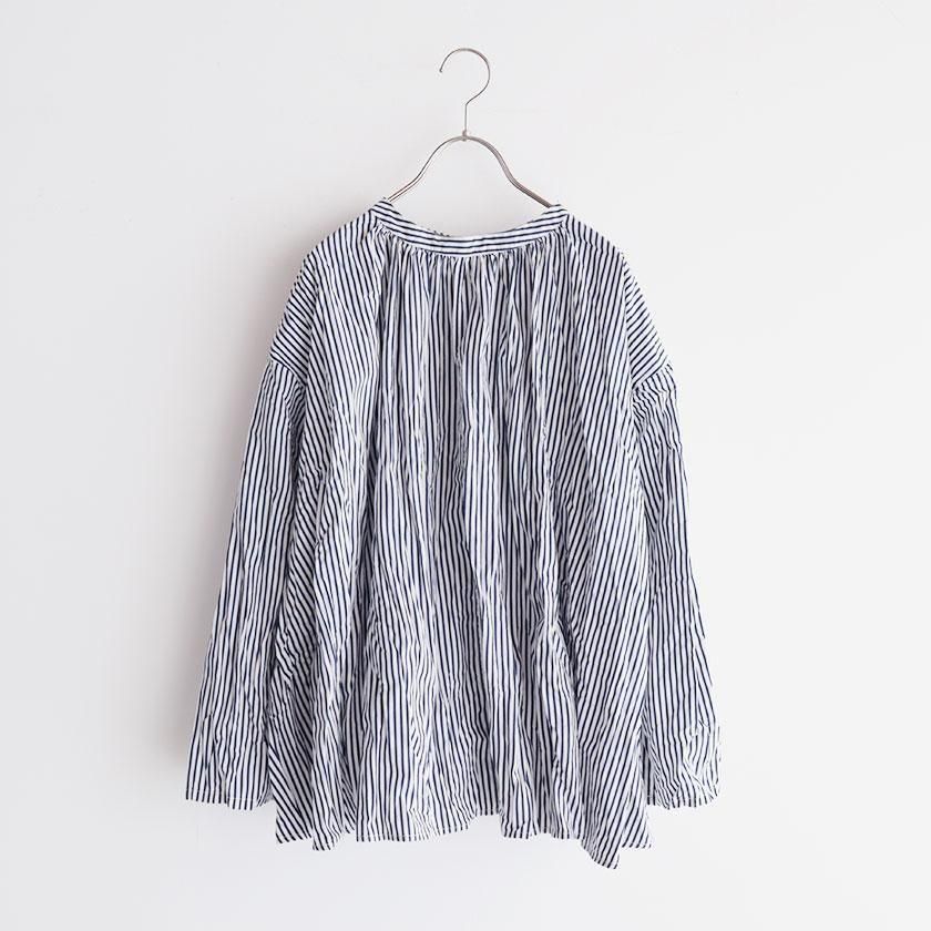 grin定番のシャツ素材、しっかりとした強度と光沢感がきれいなブロード生地を使用。糸ムラ感が少なく滑らかな肌触りが特徴で、シーズン問わず快適にご着用いただけます。シワ加工を施すことで生まれるナチュラルな風合いの表面感も魅力の一つです。