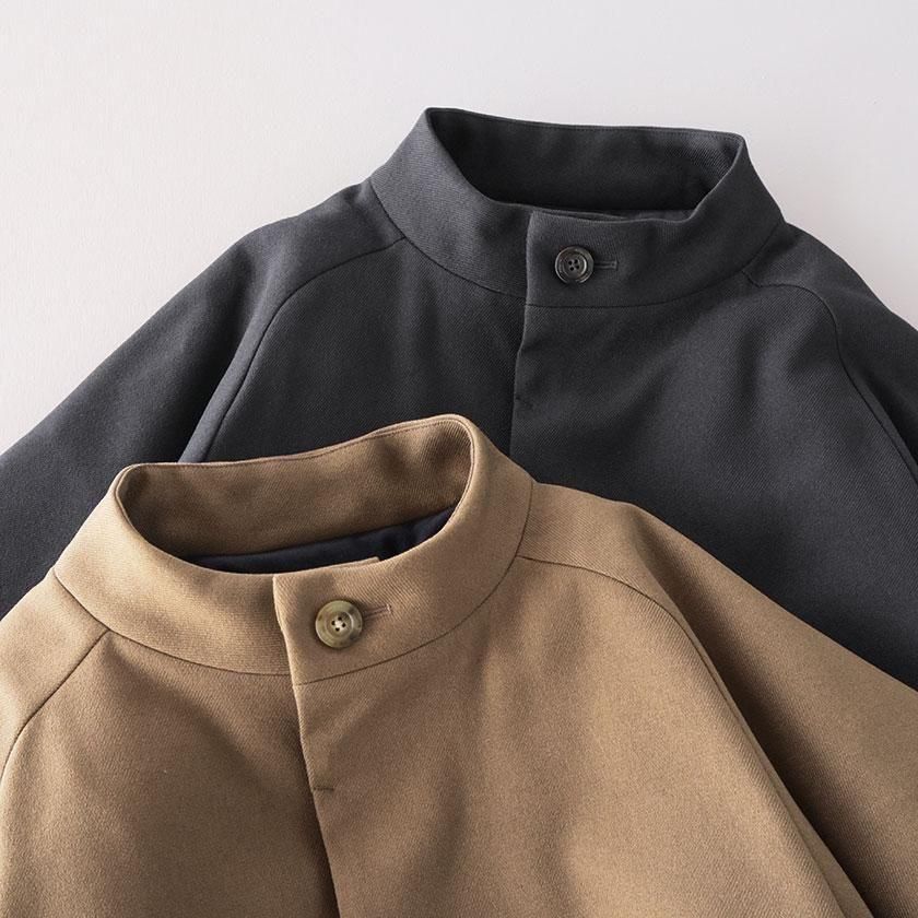 生地には先染めの糸で織り上げることで、リアルなウールに近い表情に仕上げたポリエステル素材を使用しています。劣化に強く、雨や湿気による縮みがないためお手入れも簡単。非常に軽くサッと羽織ることができるので、重たいコートだと肩が凝ってしまう…という方にもおすすめです。