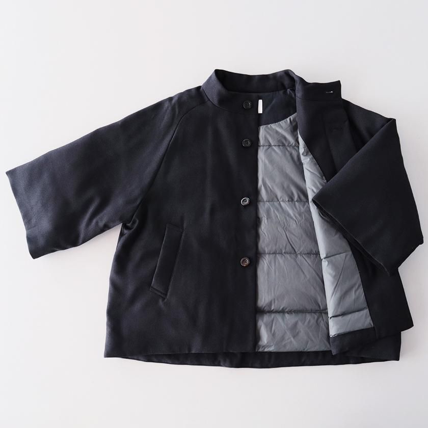 miffew (ミフュー)より、ケープのようなシルエットがクラシカルでエレガントな雰囲気のダウンコートのご紹介です。