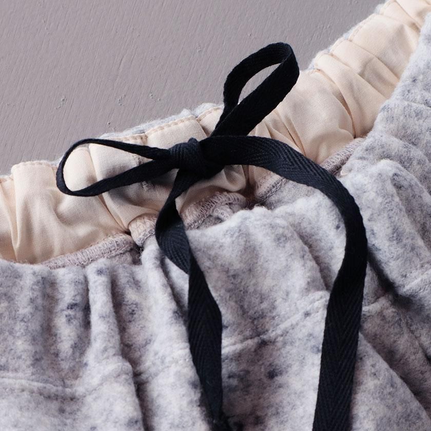 生地に使用しているのはふっくらとしたフェルトのような質感のウールリング。密に編まれたパイル編みが空気をたくさん含むため、保温性に優れているのが特徴です。ウール特有のチクチクとした肌触りも気になりにくく、軽さと伸縮性も兼ね備えたブランドの人気素材です。