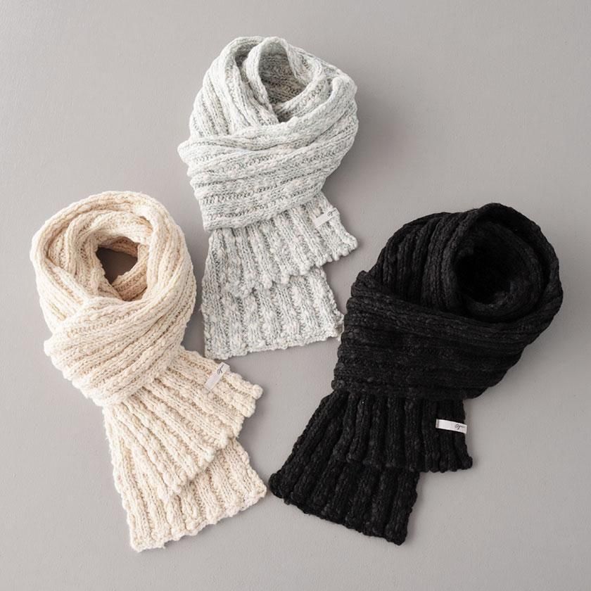 grin (グリン)より、ほどよいボリューム感で気兼ねなく楽しめるニットマフラーご紹介です。