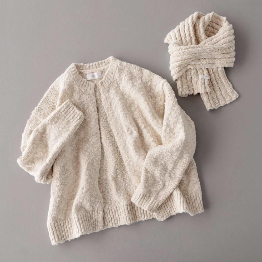 ざっくりとした編み地と凹凸感のあるネップが特徴的。ぽこぽことした独特な手触りとあたたかみのある風合いが秋冬にぴったりです。