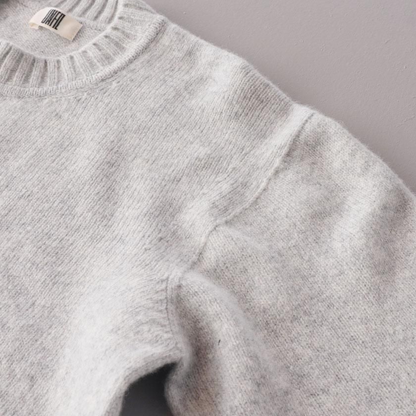 デイリーにニットを着て欲しいという気持ちから、ミドルゲージでケアがしやすく、たくさん着用してもへこたれない編み地で製作されたUNFIL (アンフィル)のニットプルオーバーです。