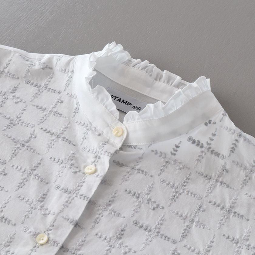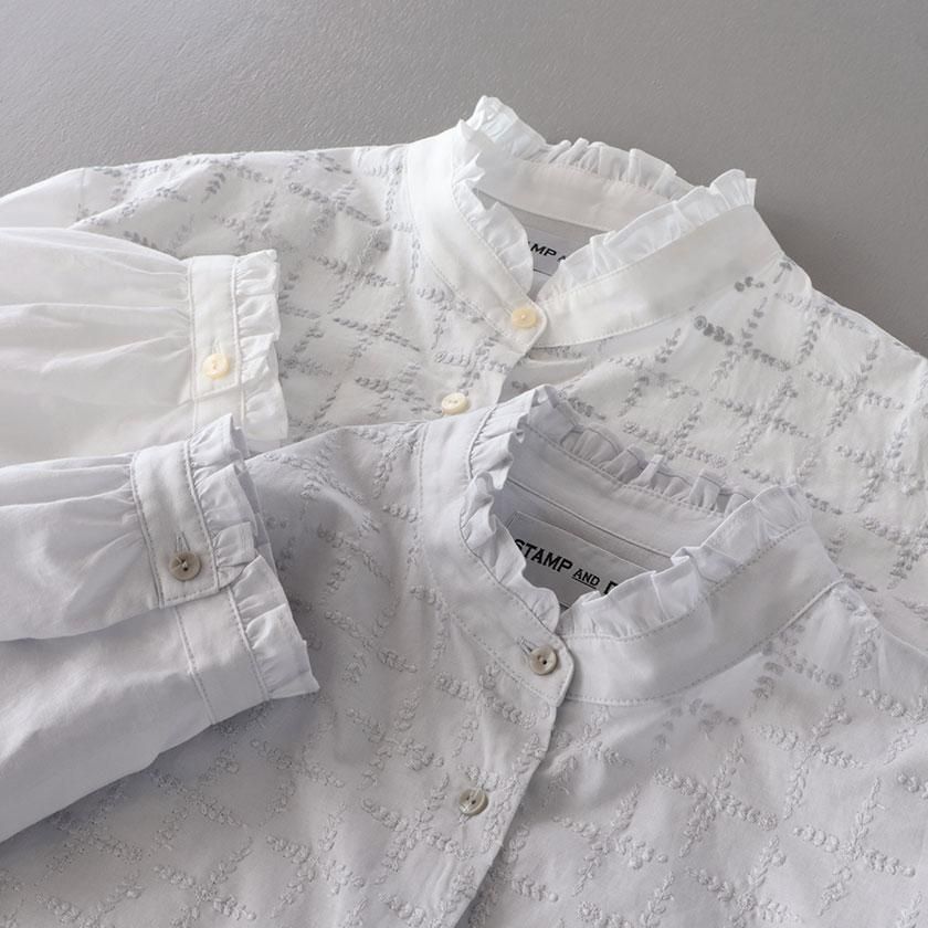 STAMP AND DIARY (スタンプアンドダイアリー)より、上品さの中にほんのり甘さを感じられるフリルブラウスご紹介です。