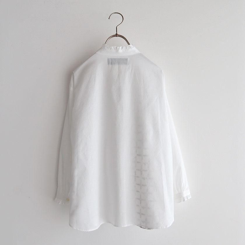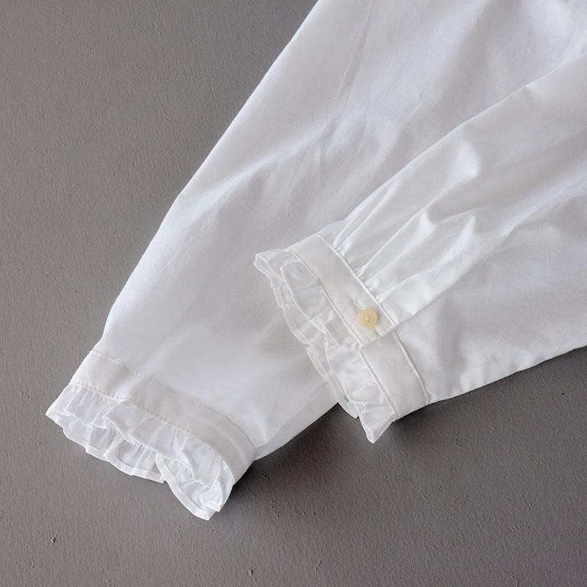 主役として着るのはもちろん、ベストやカーディガンとのレイヤードで首元や袖口からフリルを覗かせるのも素敵ですね。日常着としてはもちろん、オフィスやオケージョンシーンにも活躍してくれる一着です。