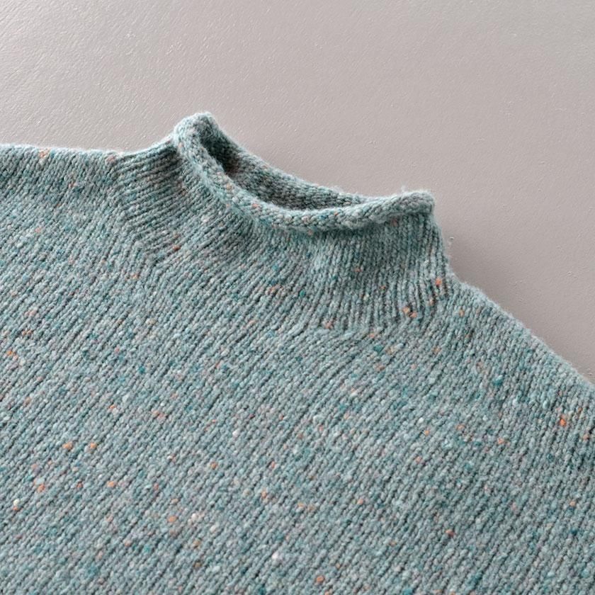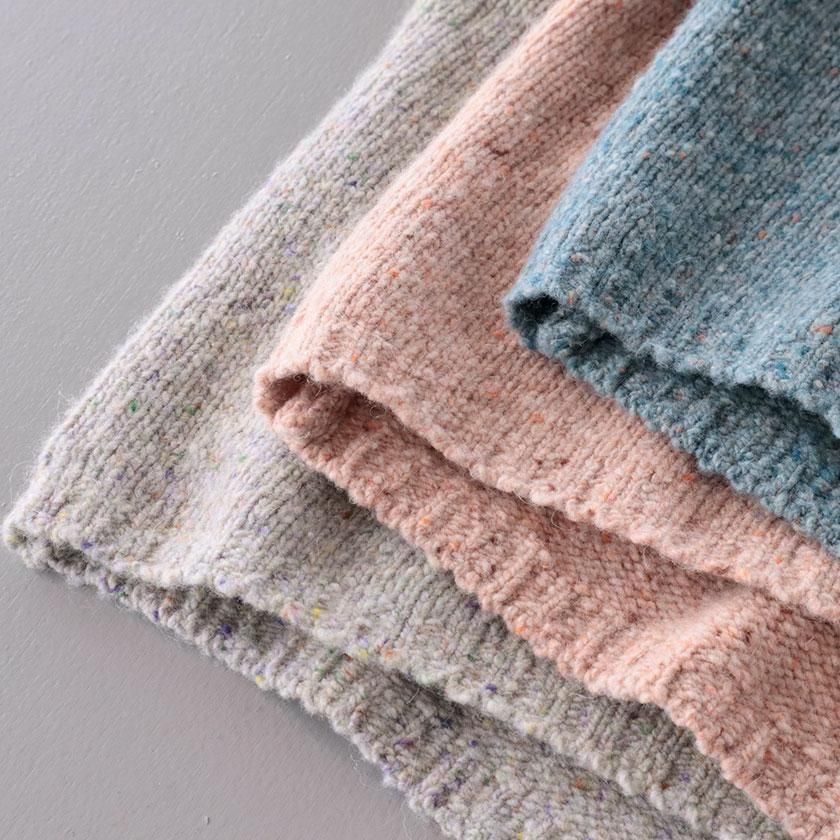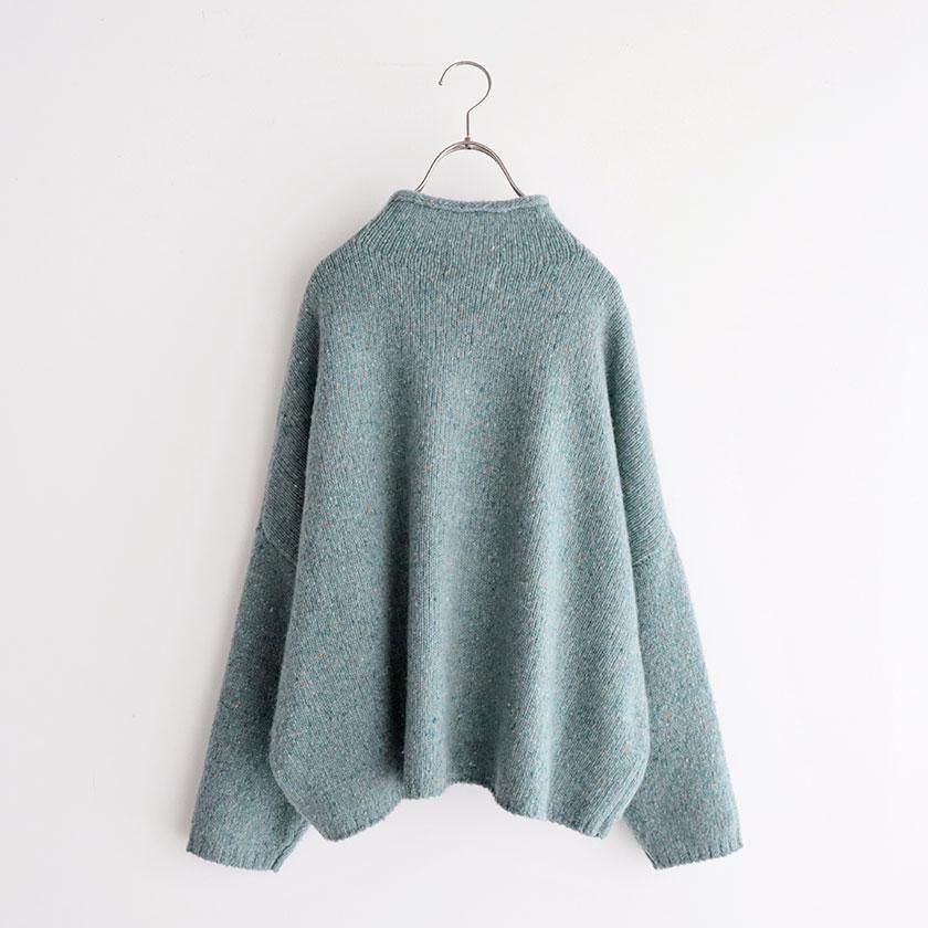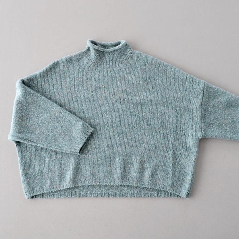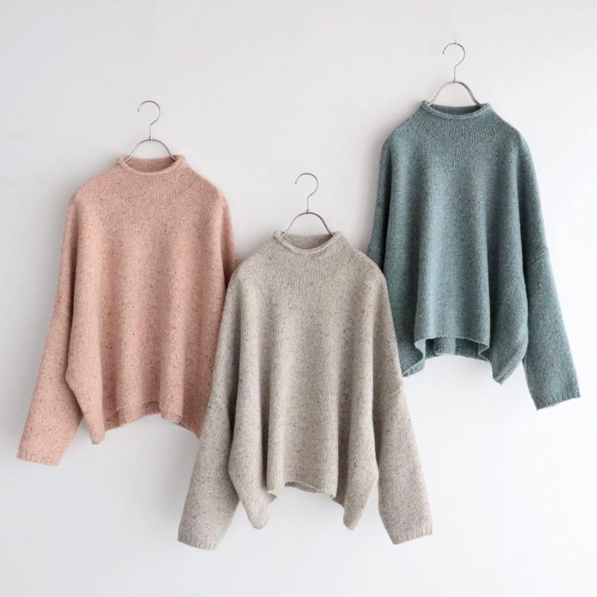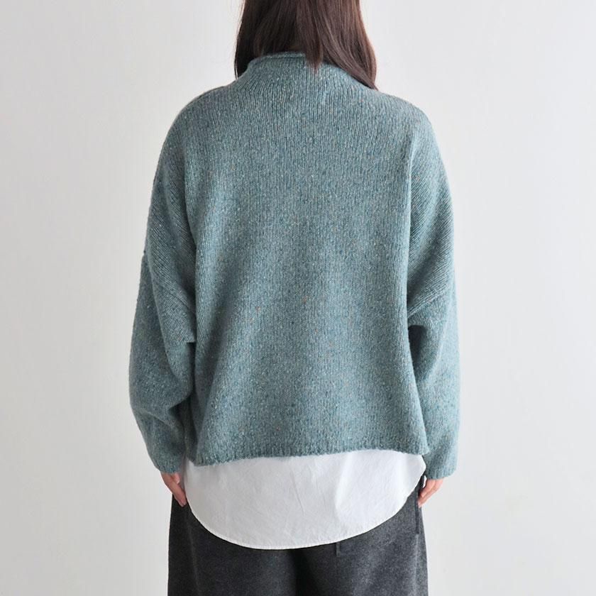 ざっくりとした編み地に、様々な色のカラーネップが入った表情豊かな一着。ナイロンの耐久性とウールの柔らかな風合いを併せ持ち、アルパカを混紡することでチクチク感を抑えたしっとり滑らかな肌触りに。ほどよい厚みがありながらずっしりとした重さはなく、気軽に着用いただけます。