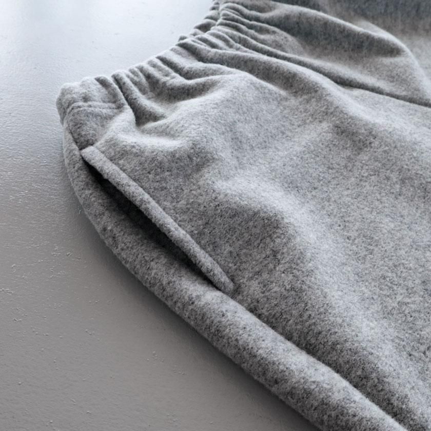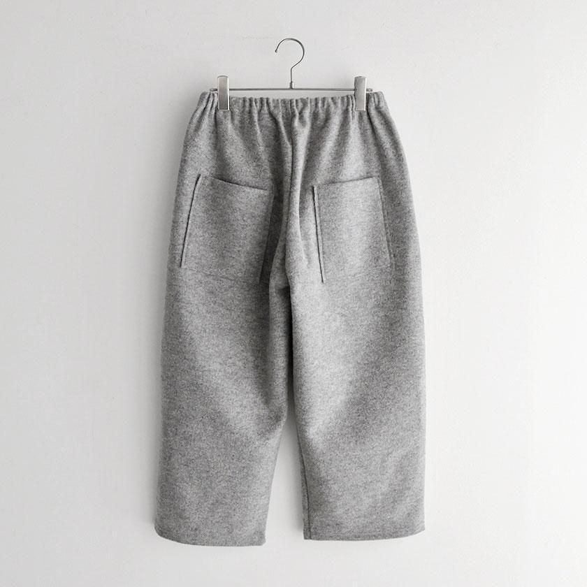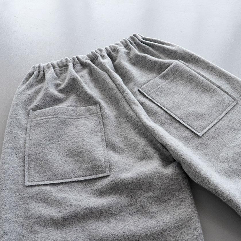 ほんのり緩やかな丸みのあるシルエットが特徴的。全体的にゆとりを持たせたサイズ感で楽ちんな穿き心地が魅力です。足首が見える短めの丈にすることでルーズな印象にならず、着こなしのバランスが取りやすい仕上がりになっています。ウエストは総ゴム仕様で内側のドローコードでサイズ調節が可能。ポケットは両サイドとヒップ部分にバックスタイルのアクセントになる大きめのパッチポケットが付いています。