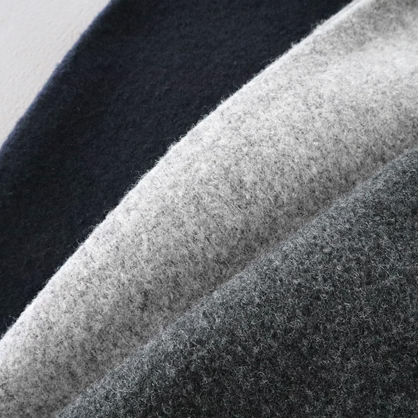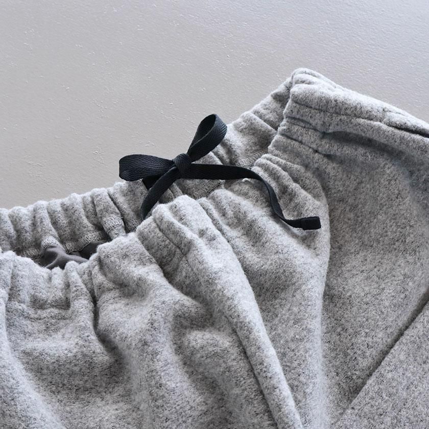 生地に使用しているのはふっくらとしたフェルトのような質感のウールリング。密に編まれたパイル編みが空気をたくさん含むため、保温性に優れているのが特徴です。ウール特有のチクチクとした肌触りも気になりにくく、軽さと伸縮性も兼ね備えたブランドの人気素材です。